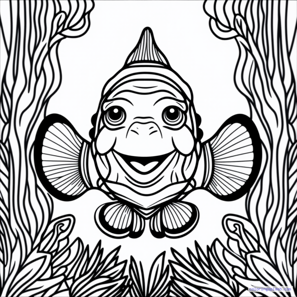 A beautiful coloring page featuring Nemo the clownfish playing happily vintage style.