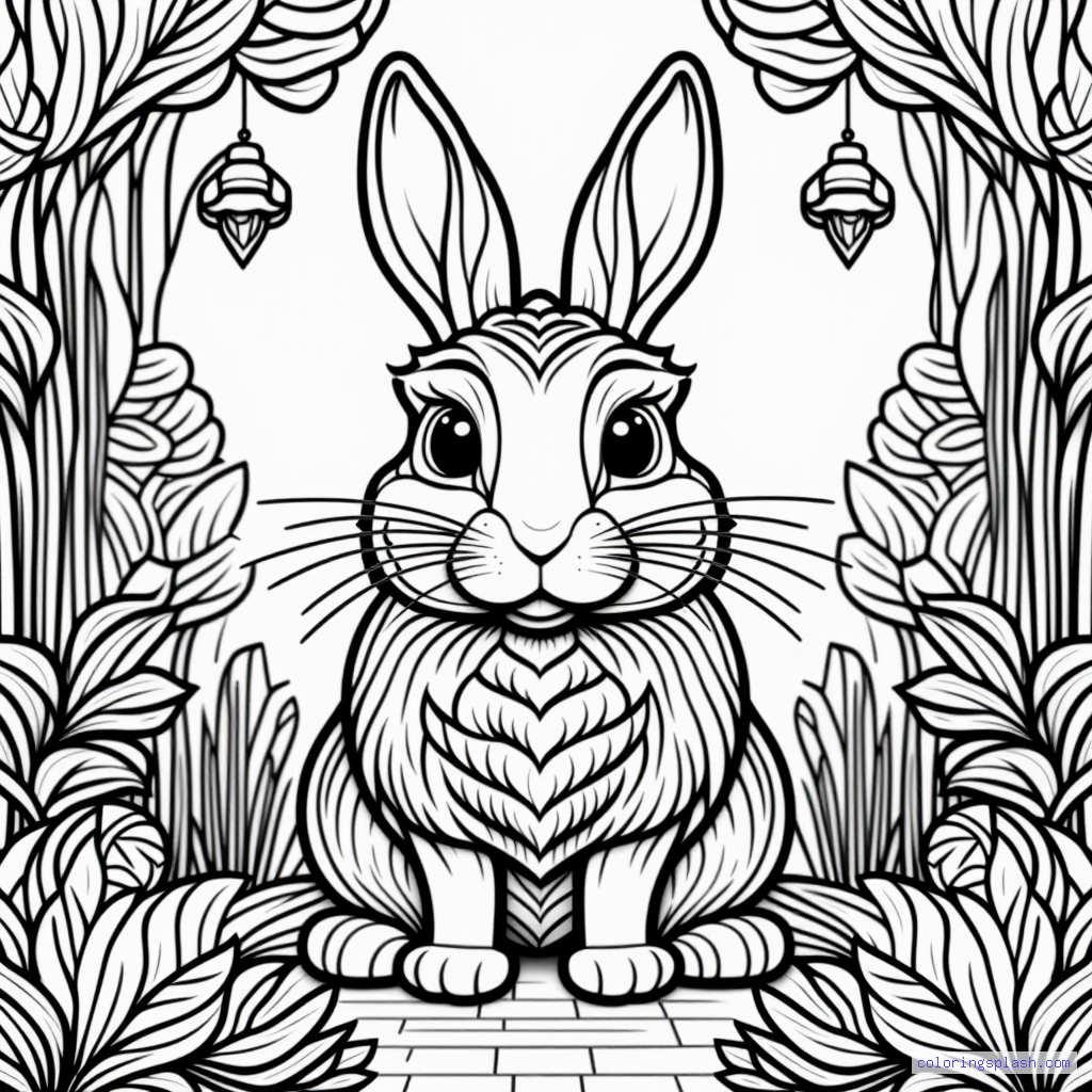 A beautiful coloring page featuring Thumper the rabbit in a garden vintage style.