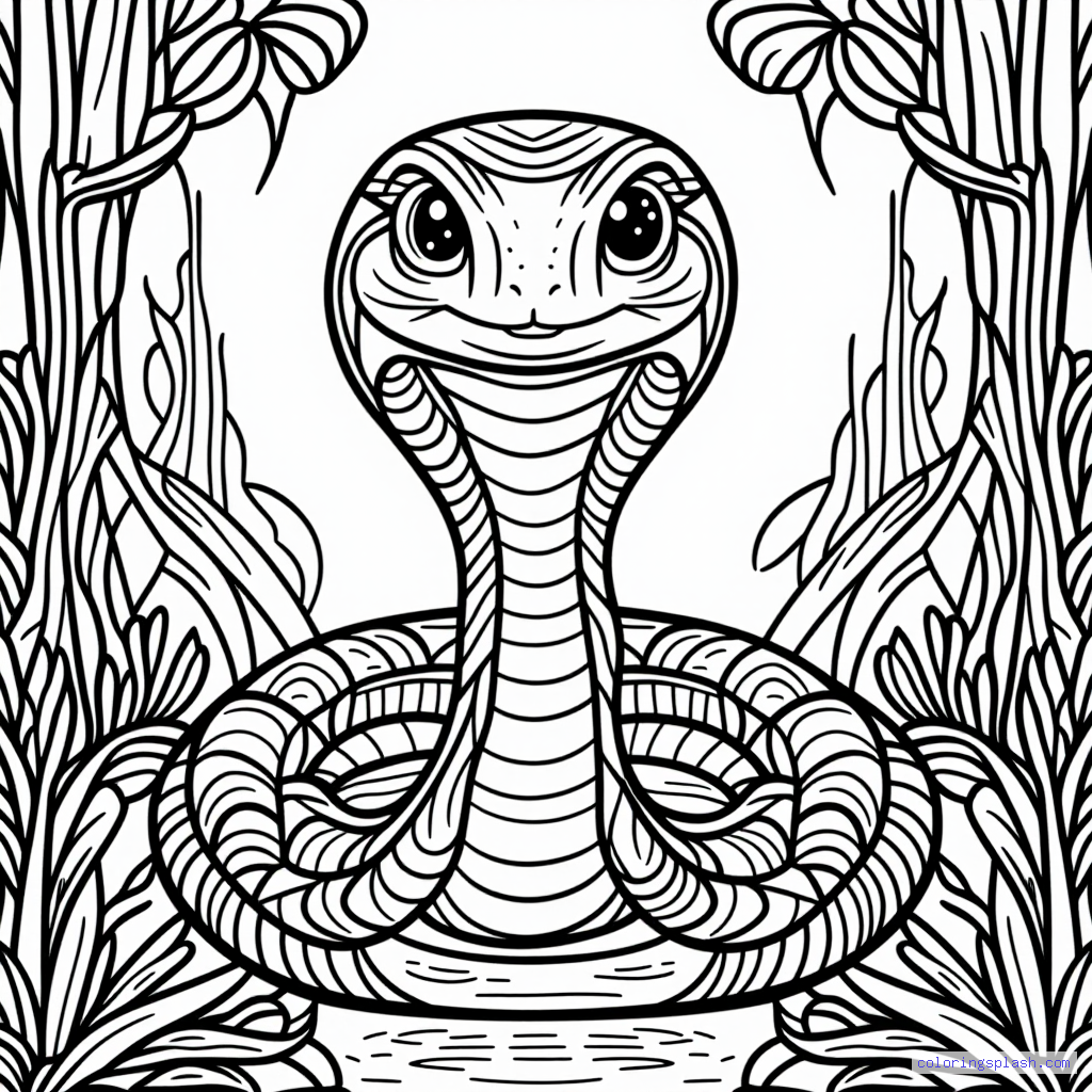 A beautiful coloring page featuring Kaa the snake in nature cartoon style.