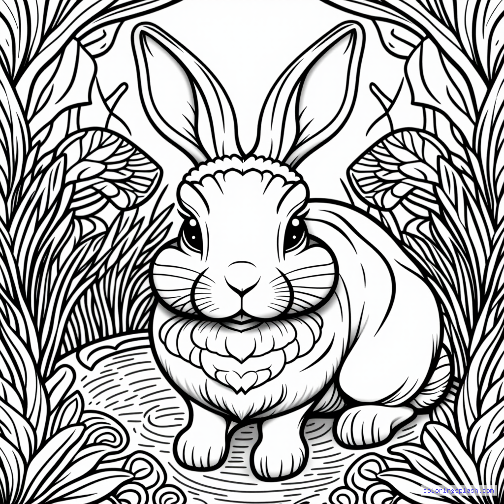 A beautiful coloring page featuring rabbit in garden.