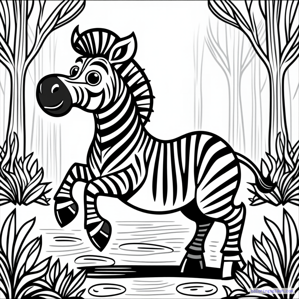 A beautiful coloring page featuring zebra with stripes playing happily storybook illustration.