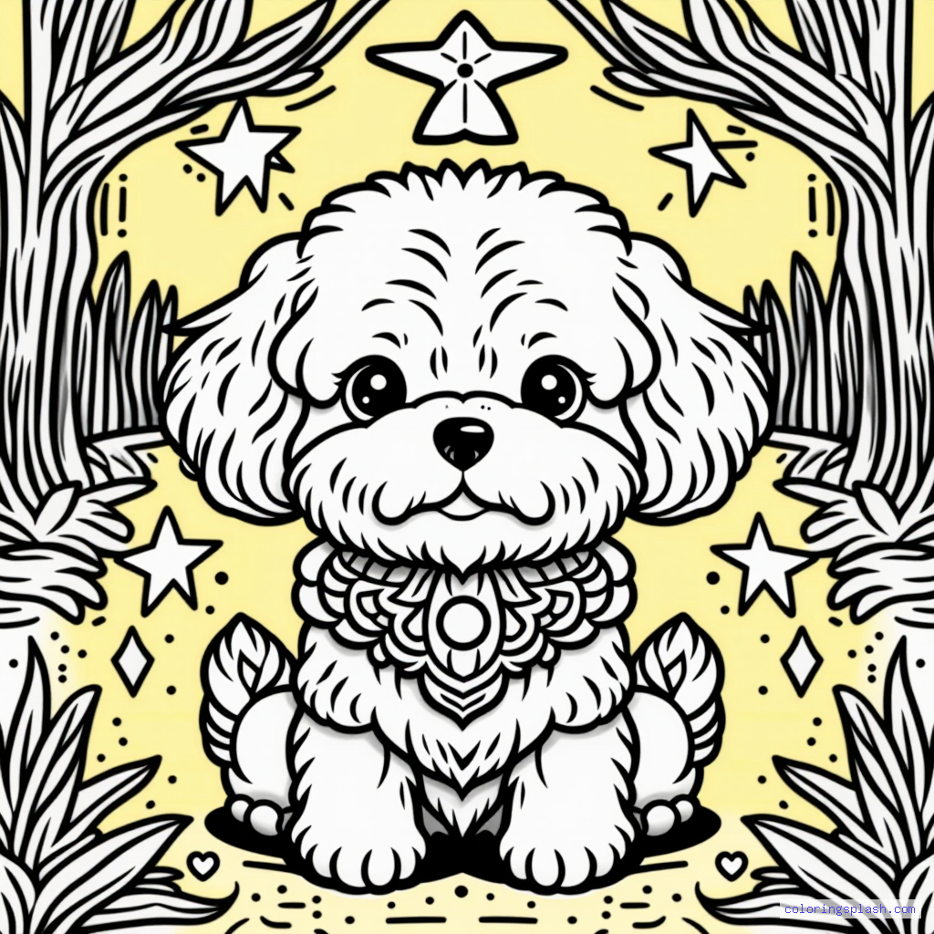 A beautiful coloring page featuring farm dog with stars chibi style.