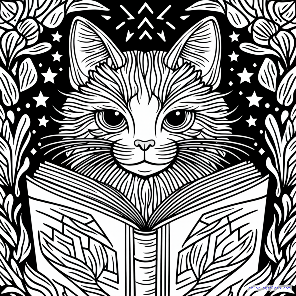 A beautiful coloring page featuring barn cat with stars storybook illustration.
