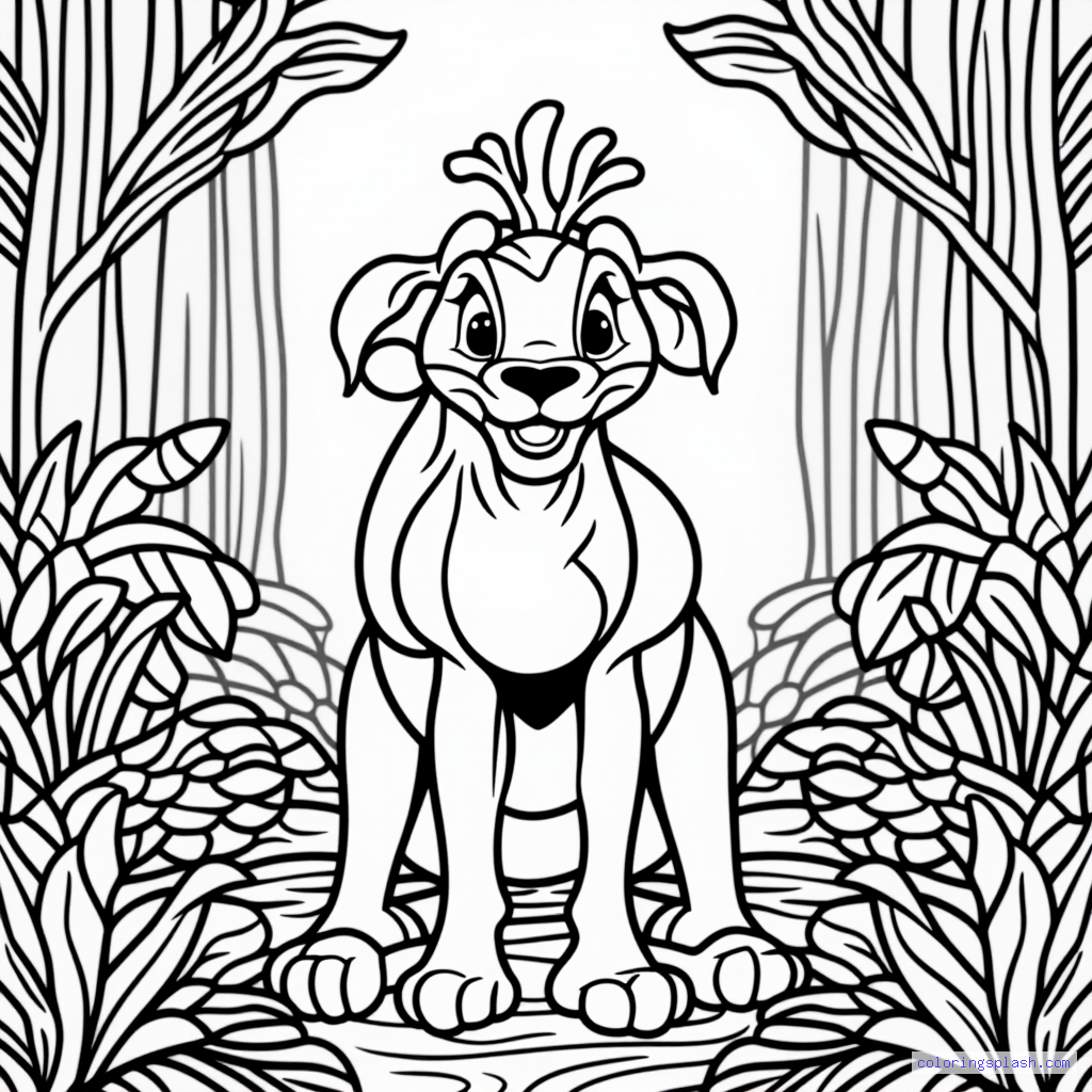 A beautiful coloring page featuring Pumbaa and Timon cartoon style.