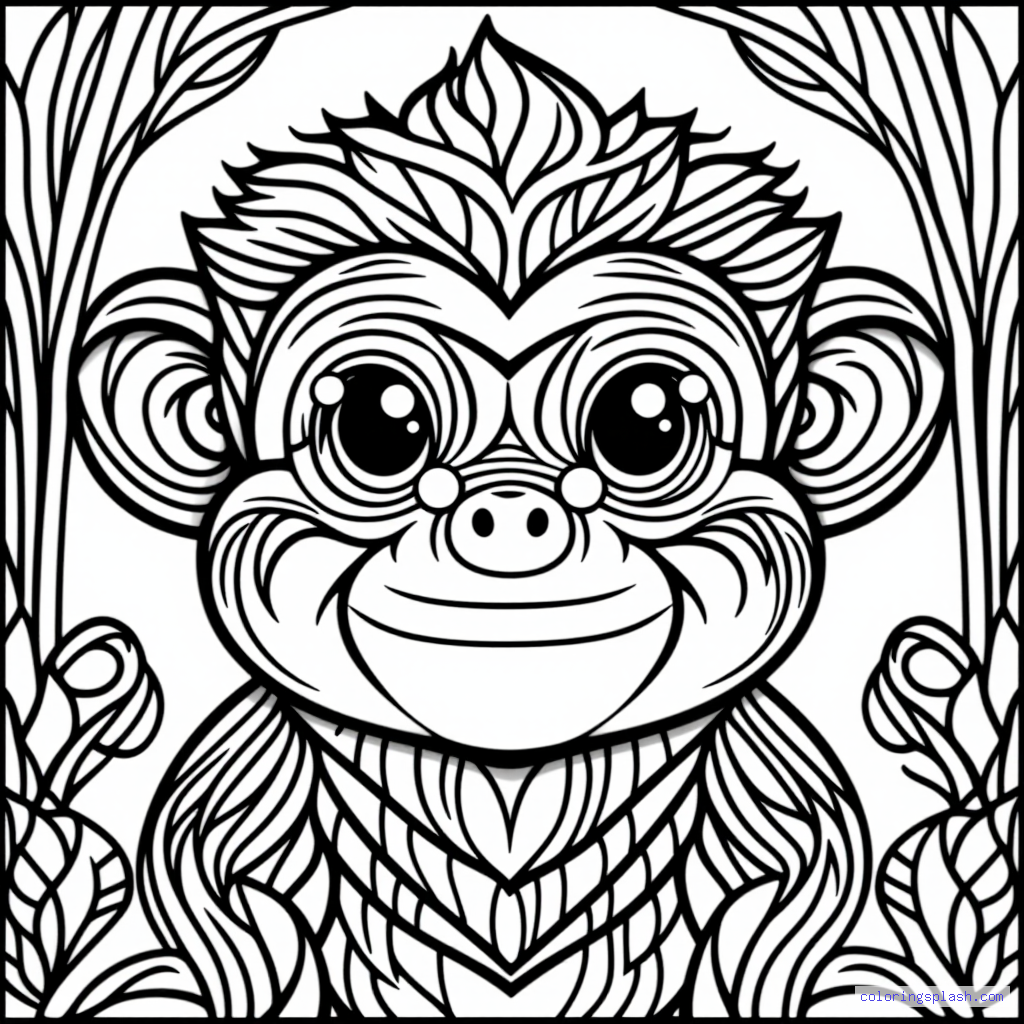 A beautiful coloring page featuring Rafiki the baboon smiling cute kawaii style.
