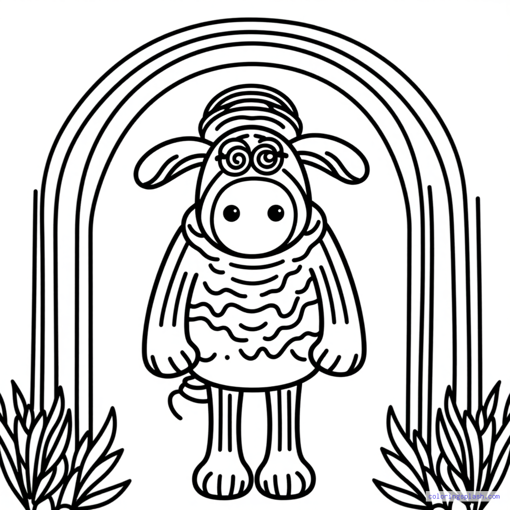 A beautiful coloring page featuring Shaun the Sheep with rainbow simple line art.