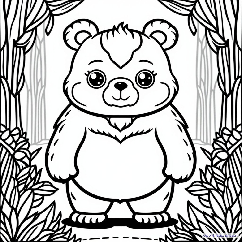 A beautiful coloring page featuring Baloo the bear in nature chibi style.