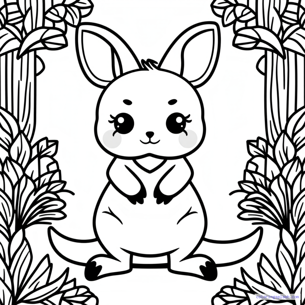 A beautiful coloring page featuring kangaroo with joey in a garden cute kawaii style.