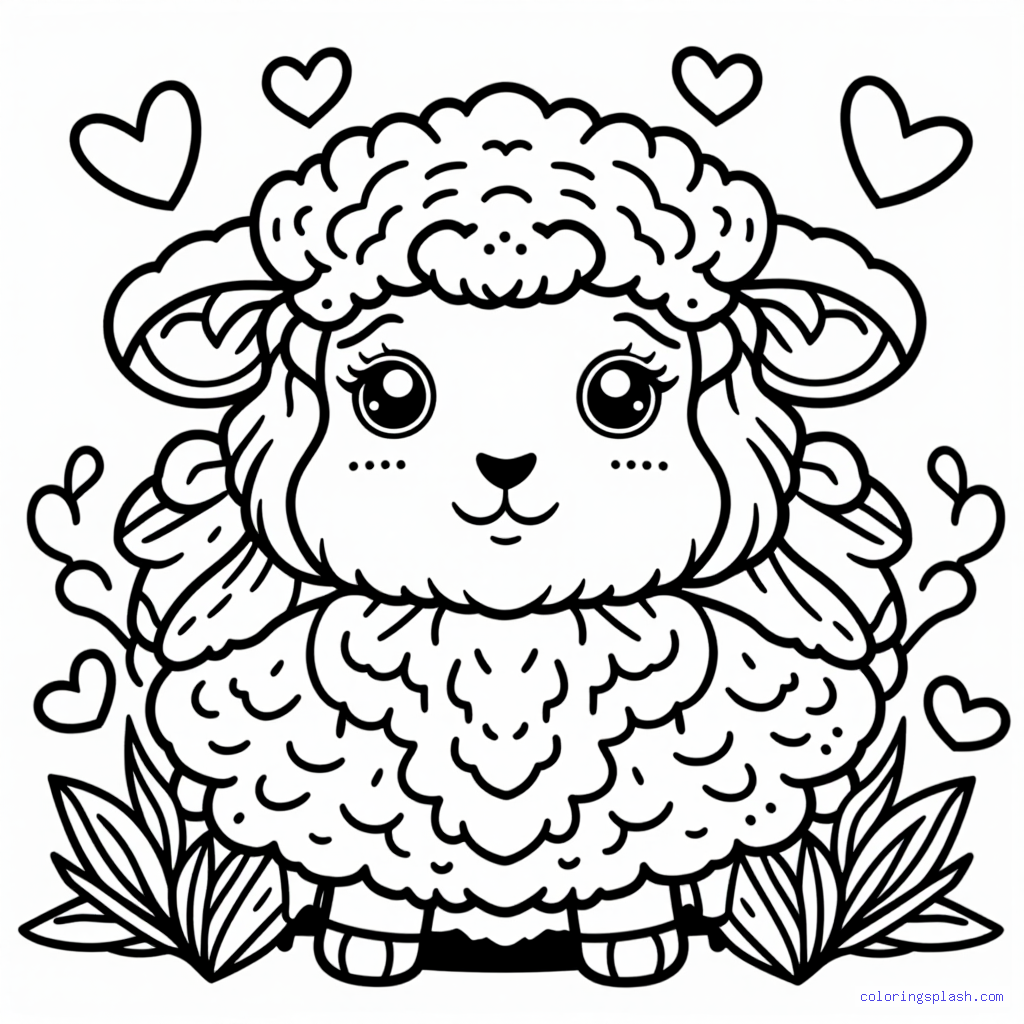 A beautiful coloring page featuring fluffy sheep with hearts cartoon style.